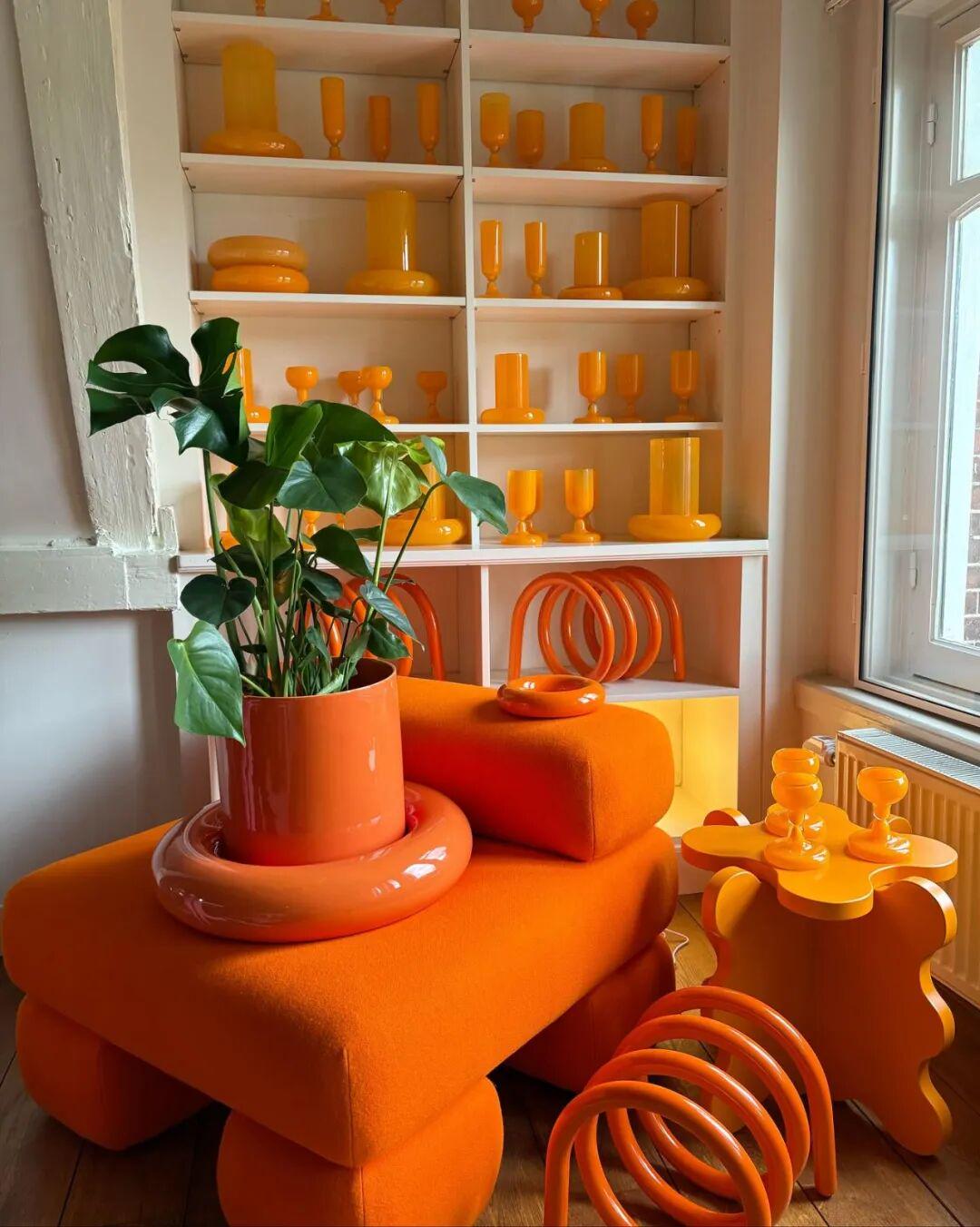 他那些“胖乎乎”的作品很快就成为了社交媒体的宠儿。Curvy Mirror(曲线镜)、Chunky Cup(厚重茶杯)、Pipe Chair(水管椅)……以各自的独特造型命名的物件一经推出,便在社交媒体上被疯狂转发。它们仿佛自带舞台效果,能让空间立刻生动起来。大家称Gustaf的设计为“成年人的玩具”,既具备实用性,又能带来纯粹的快乐。
