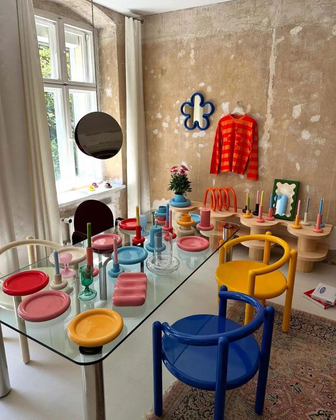 这些作品很容易让人联想到20世纪60至80年代的孟菲斯风格,但北欧简约的基因同样显性。Gustaf擅长把两者揉合:既有北欧的干净、克制,又有孟菲斯张扬的色彩表达和趣味性。这也是为什么我们可以在他的设计里同时看到现代性和怀旧感,既不流于浮夸,也不会沦为乏味的功能主义。